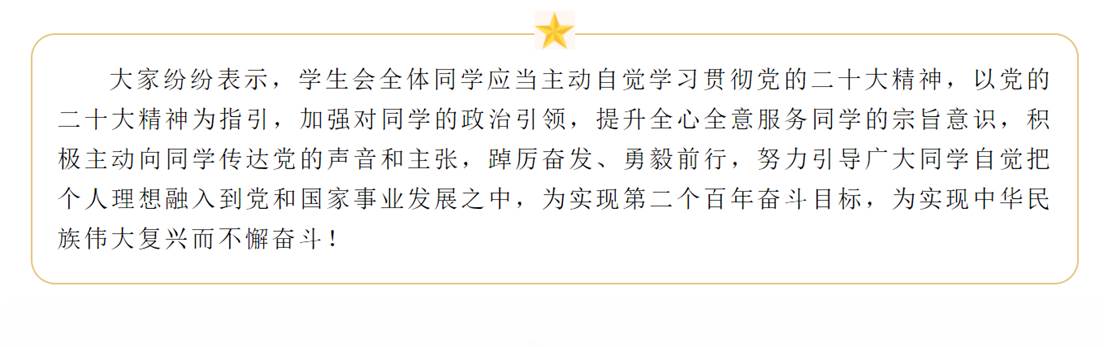 为深入学习党的二十大精神,激发学生会成员的使命感和责任感,10月17日晚,52书库 学生会在何微纪念馆召开学习会,专题学习党的二十大报告,会议采取线上线下相结合的方式,全体学生会成员参与会议。