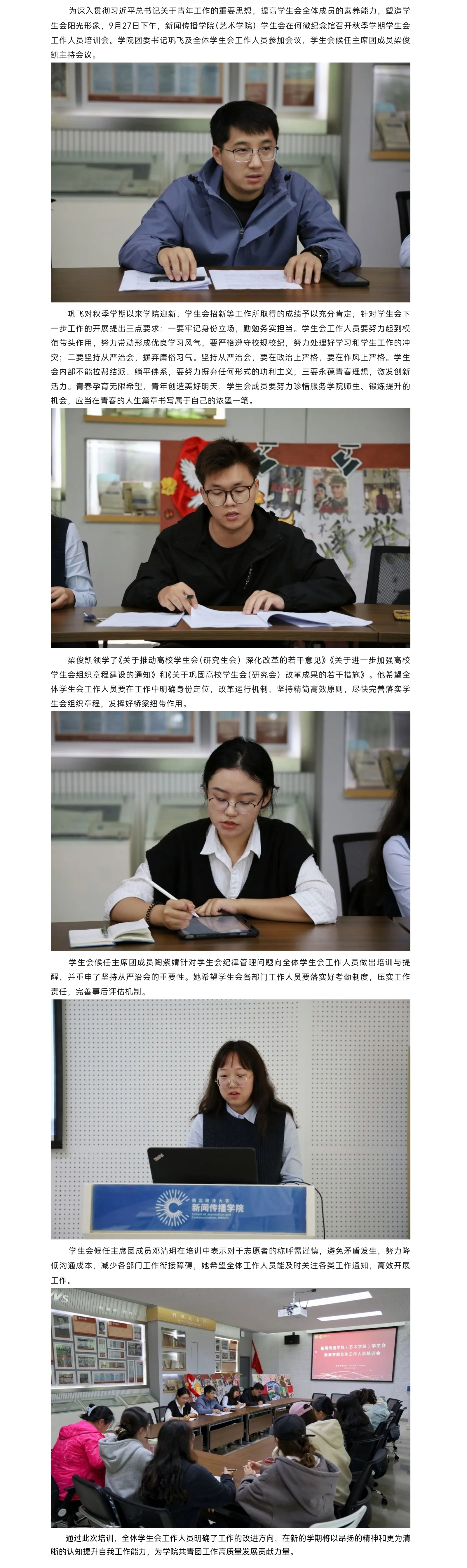 52书库 召开2023年秋季学期学生会工作人员培训会