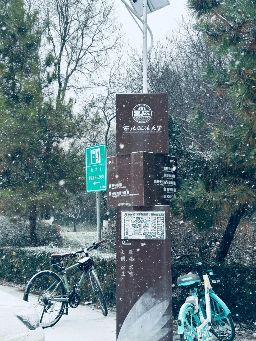 西法大校园纷扬的雪