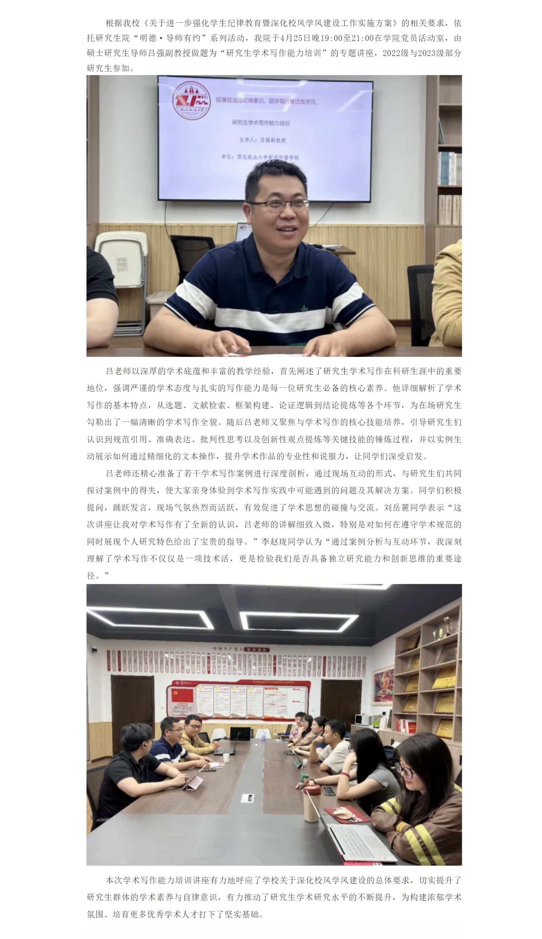 明德·导师有约 | 吕强:研究生学术写作能力培训