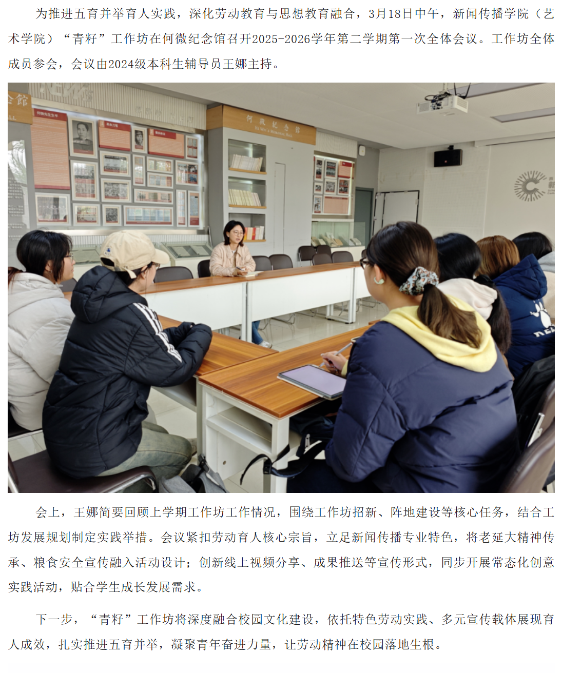 “一站式”学生社区|“青籽”工作坊召开2025-2026学年第二学期第一次全体会议
