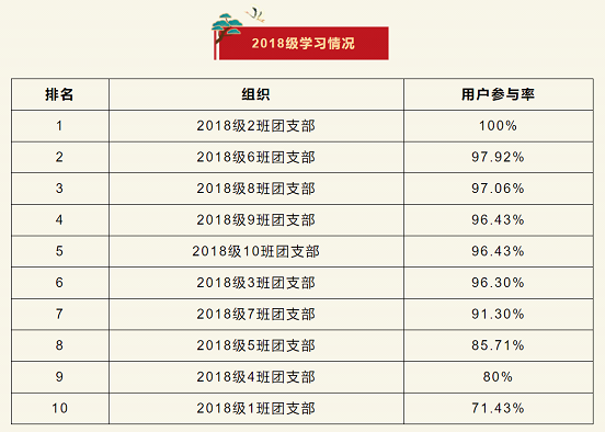 在上一期“青年大学习”网上主题团课的学习中,2018级2班团支部位居榜首,2018级6班团支部排名第二,2018级8班团支部排名第三。