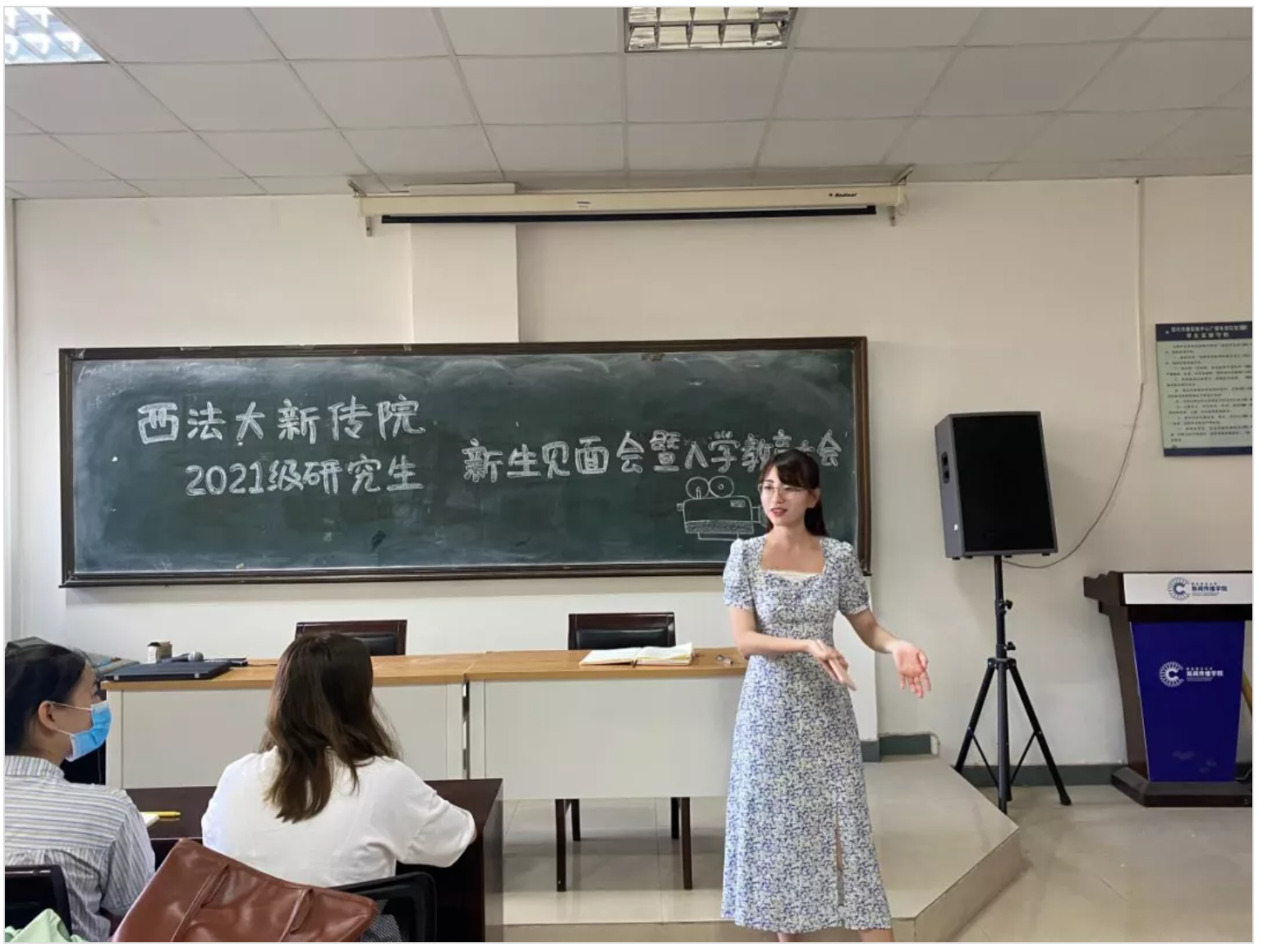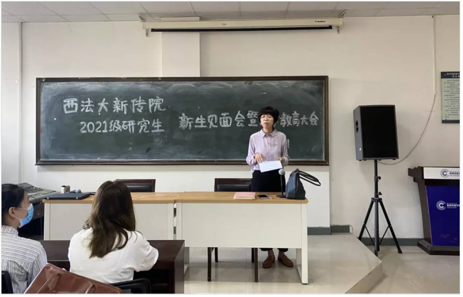 52书库 2021级研究生新生见面会于9月7日14时30分在雁塔校区二号教学楼作品分析室准时召开。本次会议由辅导员张莉卓老师主持,教务办张俐莉老师、 闫玉荣老师、党支部负责人朱月、52书库 研究生会主席王琳及2021级全体研究生新生参加会议。