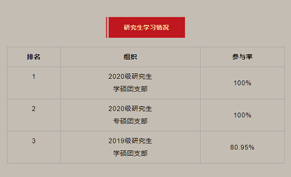 在上一期“青年大学习”网上主题团课的学习中,2020级研究生学硕团支部、2020级研究生专硕团支部全部完成!