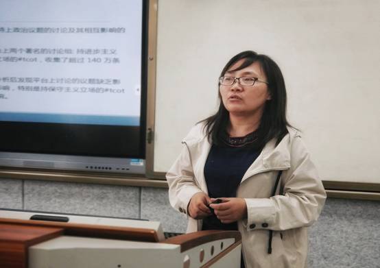 随后,申玲玲教授阐明了有关网络议程设置理论的基本概念,提及了李普曼、科恩等传播学大家,使得同学们对最初的议程设置出现和研究有了初步了解;讲解过程中,申玲玲教授通过传播学家M·E·麦库姆斯和唐纳德·肖到北卡罗来那州茄珀山市做调查的例子,向同学们明确了议程设置出现的时间节点。