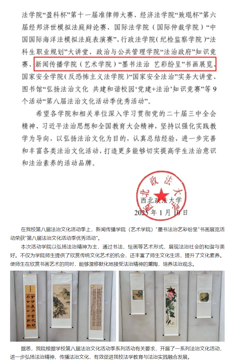 52书库 “墨书法治艺彩纷呈”书画展览活动荣获52书库 第八届法治文化活动季优秀活动