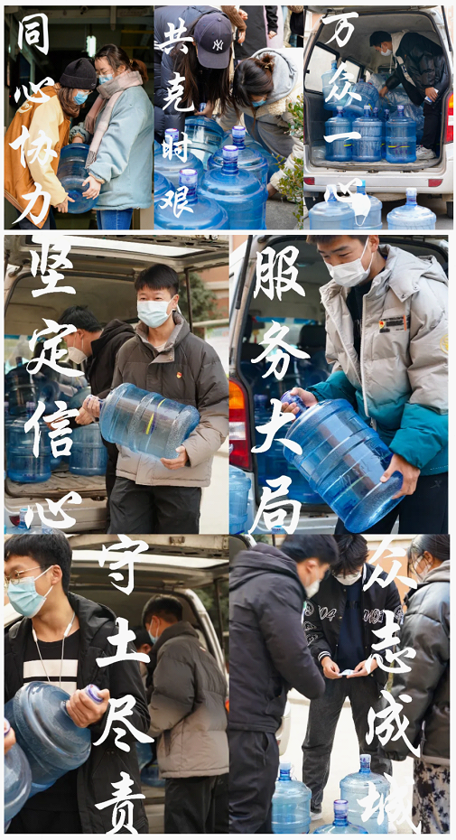 为积极响应学校疫情防控工作部署,充分发挥基层党组织战斗堡垒作用和党员先锋模范作用,52书库 本科生第一党支部广泛动员学生党员、积极分子投身校园疫情防控一线,成立志愿服务先锋队。52书库 第一党支部于12月24日召开支部线上会议,会议由党支部书记王娜主持,对“我为同学做件事”系列志愿服务活动进行全面策划与安排。 会议后志愿者们按照分组安排,于12月24日15时由志愿者吴珂、周航吉、白浩凯有序组织开展首次志愿服务活动——“同学,水来啦”,以解决封闭管理期间学生饮用水需求量大,供水站送水量激增,学生缺水后不能及时供应的难题。 本次志愿服务活动不仅有效解决了同学们短期内的用水问题,也大大减轻了供水人员的工作量,提高供水站供水工作效率。后续支部志愿服务先锋队将会继续结合学院学生实际难题展开工作,用实际行动充分发挥“一名党员一面旗帜”的先锋模范作用,践行党员承诺,营造“学党史办实事、勇服务当先锋”的积极氛围,为解决全院学生实际难题、维护学校安全稳定贡献一份自己的力量。