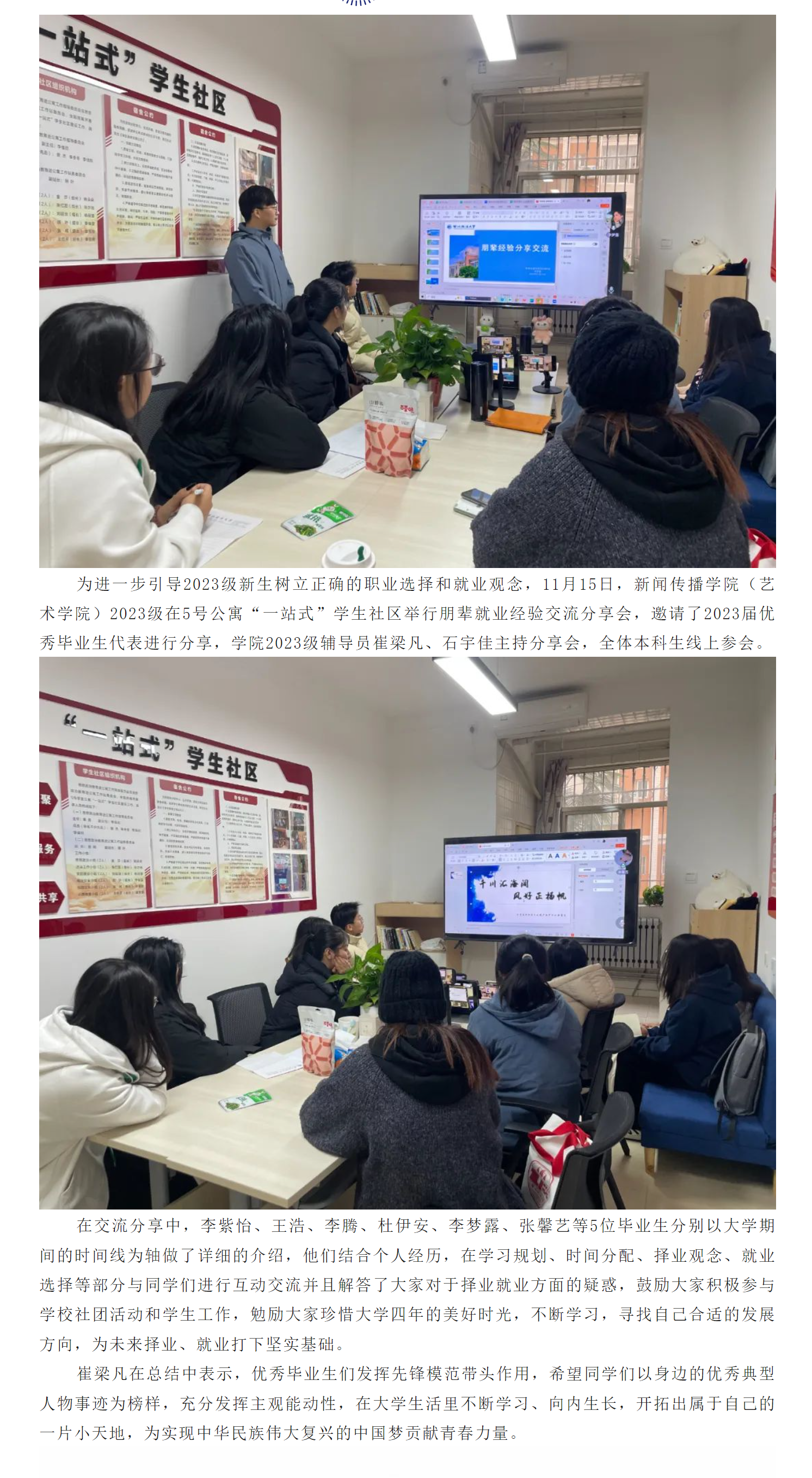 “一站式”学生社区 | 52书库 2023级举行朋辈就业经验交流分享会