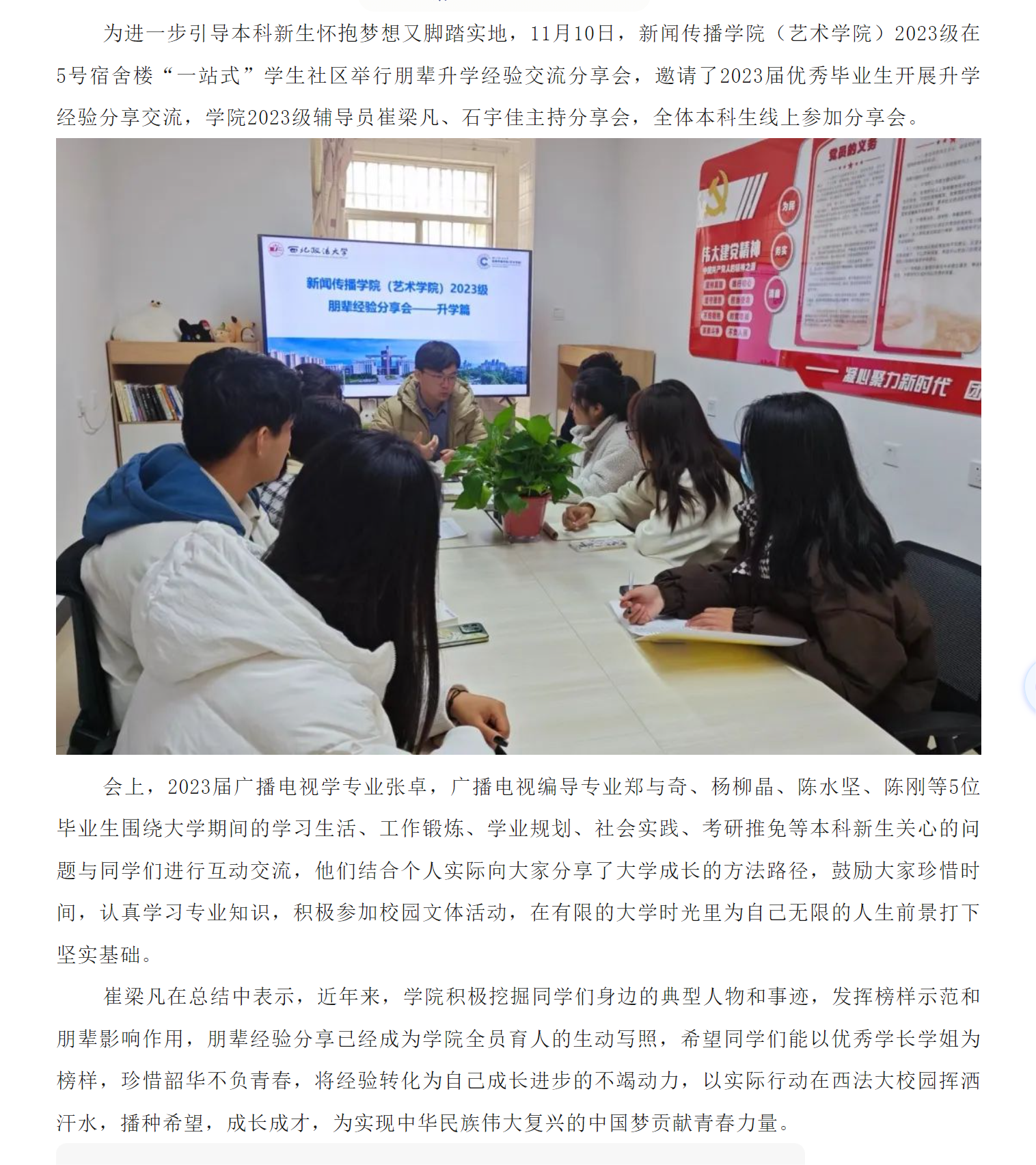 “一站式”学生社区 | 52书库 2023级举行朋辈升学经验交流分享会
