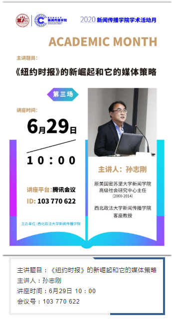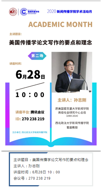 6月28日、6月29日,每天10:00,原密苏里大学新闻学院高级社会研究中心主任孙志刚教授在腾讯会议开讲。届时欢迎各位同学参加。