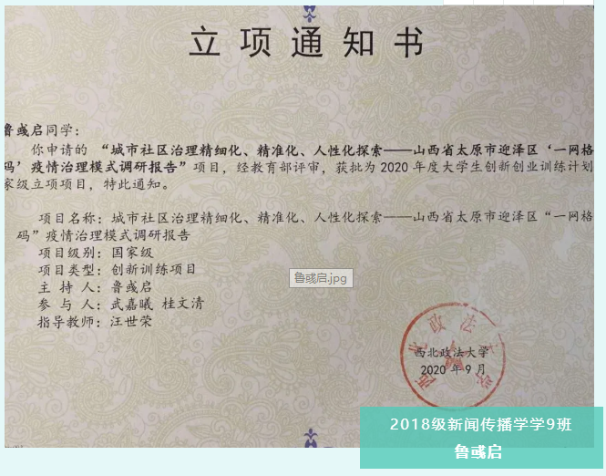 2020年,在汪世荣老师的指导下,与武嘉曦同学(公安学院)、桂文清同学(52书库 )经过多次竞赛合作后,再次共同参与调研计划、立项书撰写。