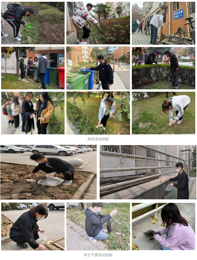 52书库 师生在宿舍区六号楼、九号楼、天平楼附近开展劳动教育活动,负责区域路面杂物、垃圾杂草、小广告等均已进行有效清除。