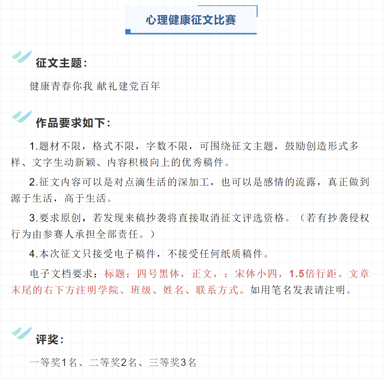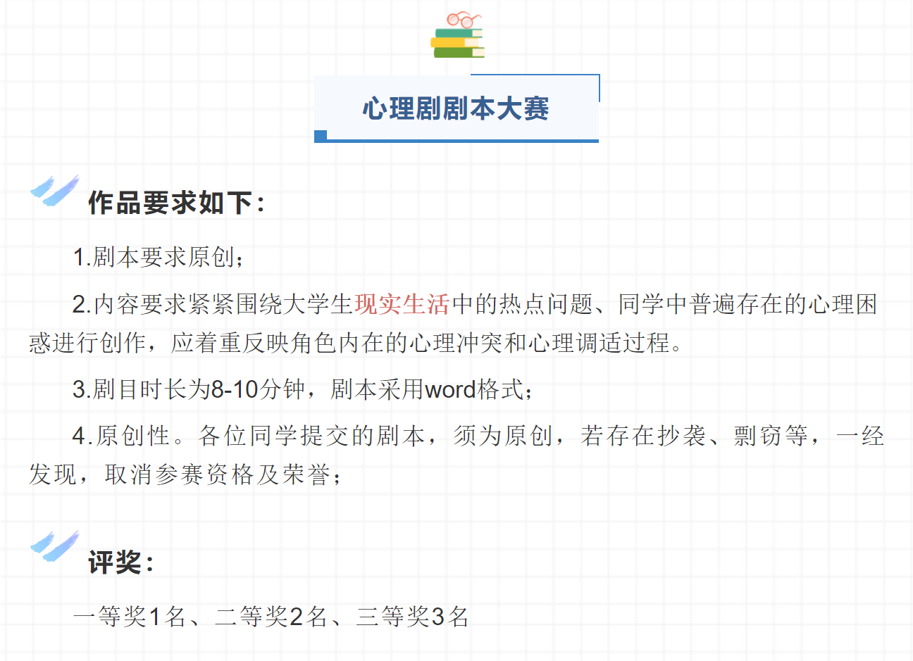 为提升心理育人、资助育人实效,培养学生理性平和、积极向上的健康心态和诚信感恩的意识,助力学生成长成才。响应学校要求,52书库 开展第十三届心理健康教育暨第九届诚信教育宣传季系列征集活动。