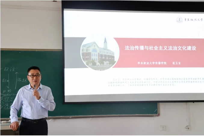 范玉吉教授从三个方面着手剖析了当今法治新闻报道与社会主义法治文化建设现状,分别是法治传播的使命、社会主义法治文化建设的发展和法治传播的要求。