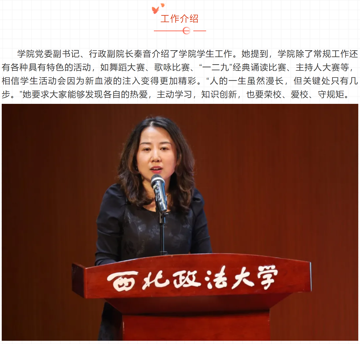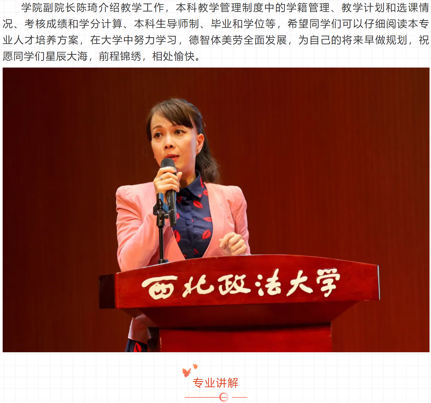 学院各系主任、教师介绍专业简况及培养计划,从教学历史、师资力量、专业特色、培养方案、学习方法、就业前景等方面对各专业做了详尽的介绍,希望同学们无论在哪个专业都能找准目标,严于律己,认真学习,勤于思考,提升自身能力,提高专业素养,在掌握专业知识的基础上积极实践,在实践过程中培养专业技能,塑造自己,度过一个充实愉快的大学生活。