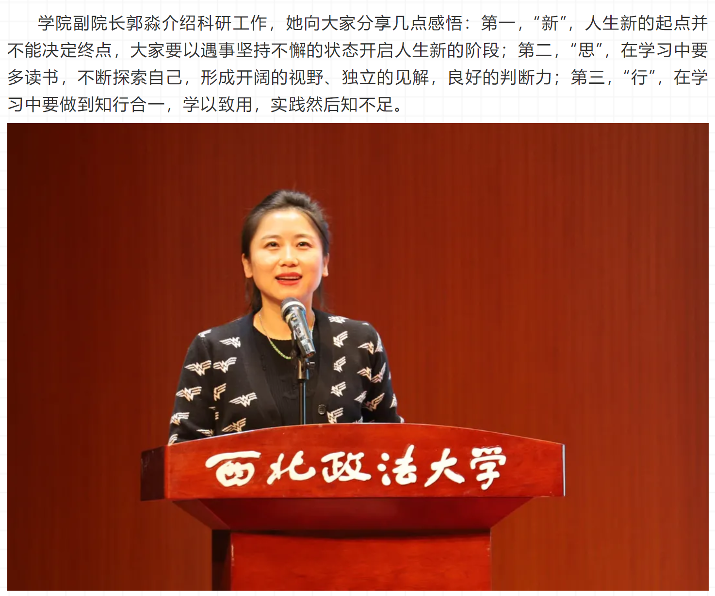 见面会最后,刘渊勉励2021级新生,作为党和人民放心的“强国一代”,希望同学们在今后的笃学之路上,秉承老延大“政治坚定、实事求是、勇于创新、艰苦奋斗”的优良传统,大力弘扬“严谨、求实、文明、公正”的西法大校训,以“法治信仰、中国立场、国际视野、平民情怀”为成长目标,坚定方向、拓展格局、追求卓越、砥砺前行,努力成为新时代最优秀的新闻传播人才。