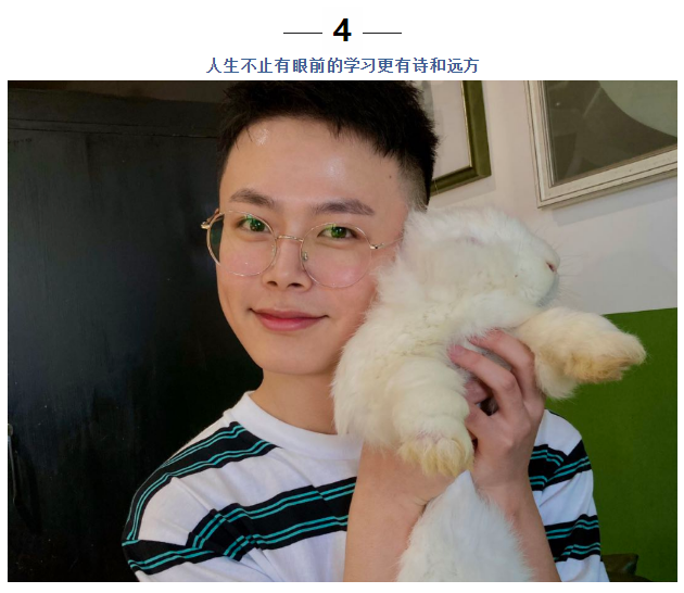 可能在大家眼里,一提起推免生想到的词就是“学霸”、“严肃”、“专注”、“学习”,没采访符嘉树学长时,我也是这样认为的。但在采访的过程中才发现学霸不仅只会学习,他和我们一样,幽默有趣且兴趣多多。学习之余,他喜欢找几部令他身心放松的电影或者漫步在西法大幽静的小路上,寻找自己内心的平静。对于他而言,学习只是为了站在更高处欣赏人生中更美的风景,追寻诗和远方。