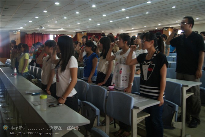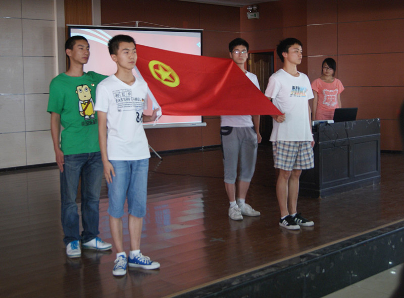 团委书记、2011级辅导员苏丹老师参加了本次活动。下午五点整,活动正式开始。首先由主持人致开幕词并宣布活动开始。接着,全体起立,奏国歌,出团旗。在清亮明快的团歌的伴随下,四名同学擎着团旗缓缓走向台前,所有同学默默注视着团旗,轻轻和着团歌,气氛庄严神圣。同学们在六班团支书程晨晨同学的带领下握紧右拳,用斩钉截铁的声音说道:“我志愿加入中国共产主义青年团,坚决拥护中国共产党的领导,遵守团的章程,执行团的决议,履行团员义务,严守团的纪律,勤奋学习,积极工作,吃苦在前,享受在后,为共产主义事业而奋斗。”坚决果断的声音,展现了新一代青年团员的精神面貌。接下来:来自不同班级的团员、团干部代表进行了发言。他们用自己的亲身感受带大家回到了当初那个激动人心的时刻,让人觉得温馨又怀念。