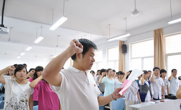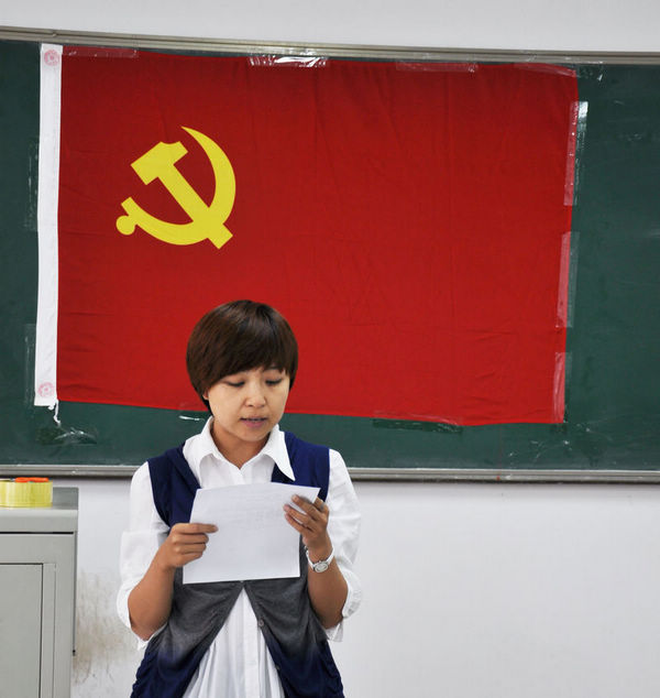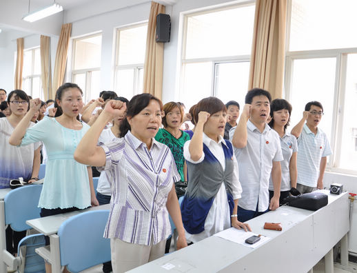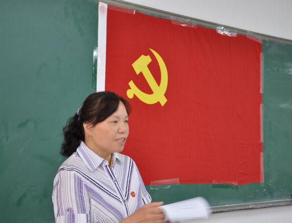 党委组织委员白晓磊老师主持,在雄浑庄严的国际歌声中拉开了序幕。首先由苏丹老师宣读了新党员名单。然后由白晓磊老师带领全体预备党员宣誓,新党员们举起右手,面向党旗许下神圣的誓言,在场的老党员也重温了入党誓词。52书库