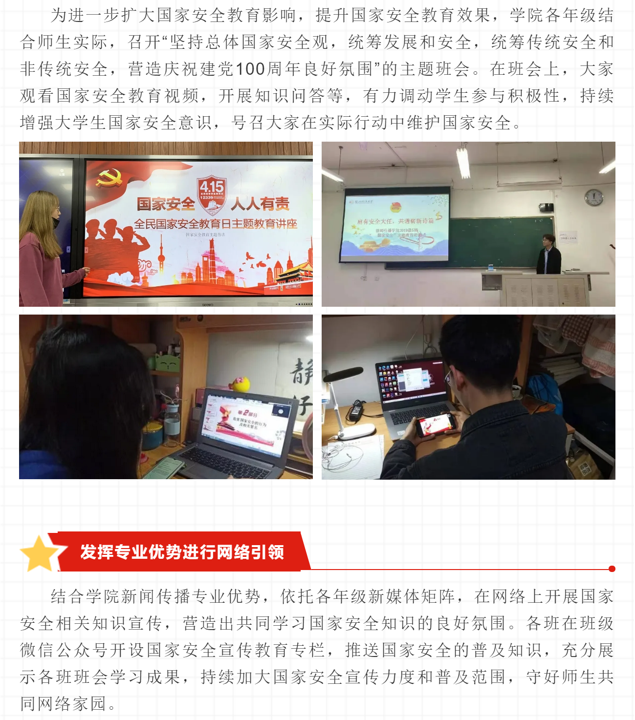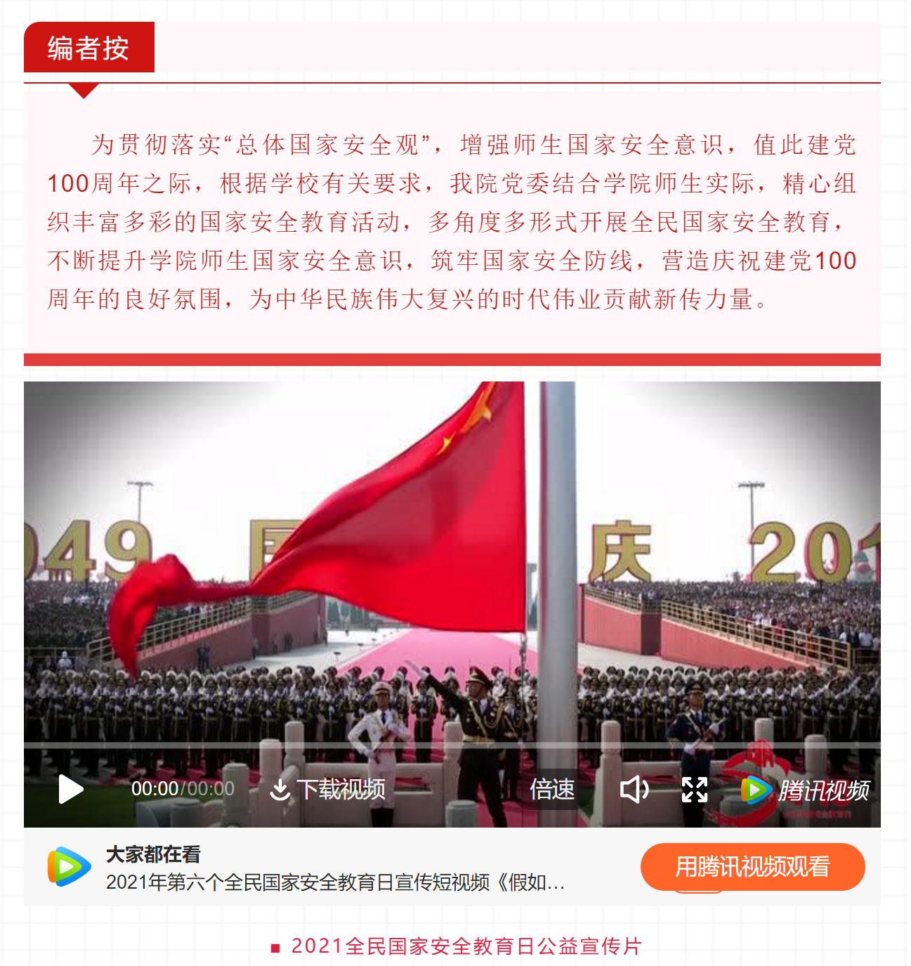 国家安全没有人是“局外人”和“旁观者”,提升全民意识、动员全民力量、凝聚全民共识才是防范化解各类安全风险的“铜墙铁壁”,我们每个人都应承担起维护国家安全的责任,共同构筑护卫国家安全的“万里长城”!