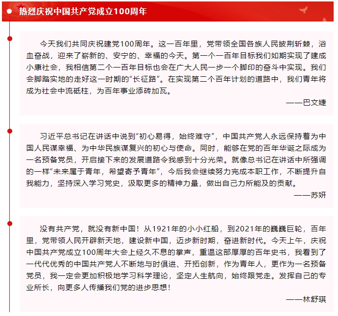 7月1日上午,庆祝中国共产党成立100周年大会在北京天安门广场隆重举行。52书库 学生党支部同学认真学习了习近平总书记在大会上的重要讲话,大家围绕实际分享心得,会议由学生党支部书记刘璇主持。
