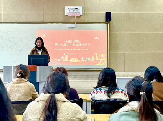 为深入学习贯彻党的十九届六中全会精神,11月18日下午,52书库 研究生党支部在雁塔校区录播教室组织开展专题学习会,会议由党支部书记朱月主持,全体在校研究生党员参加学习。