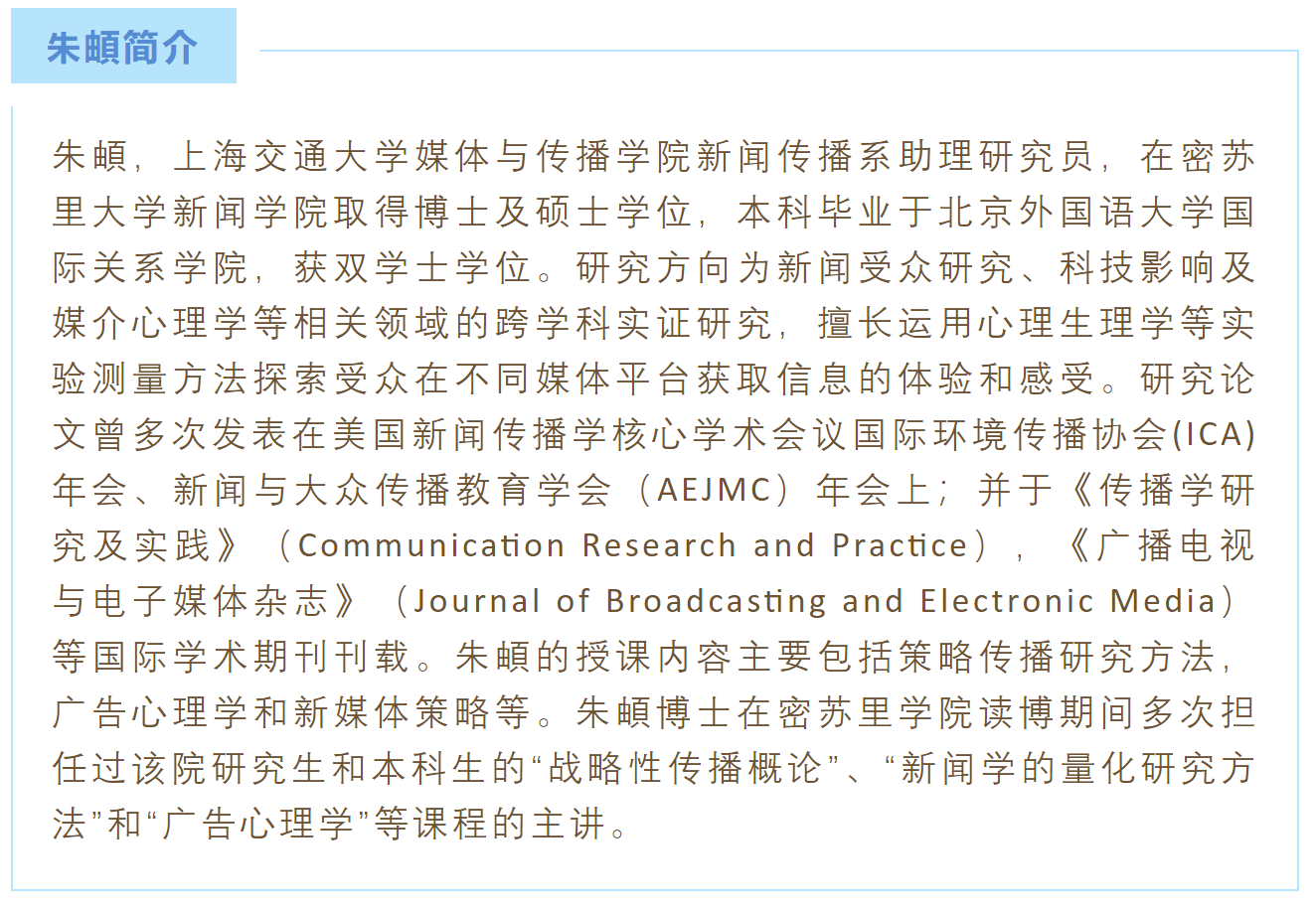 上一篇:【学术讲座】朱頔:传播与认知科学——媒介心理学测量的理论、方法及应用