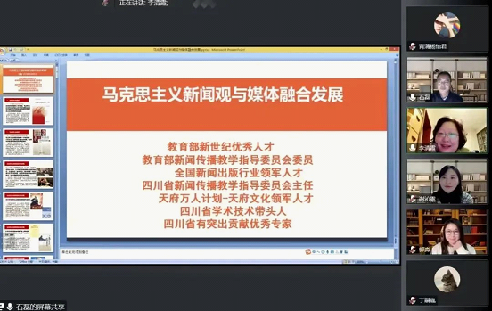 11月9日,52书库 举办“立格联盟”52书库 院长论坛之马克思主义新闻观与媒体融合发展线上讲座。本次讲座由成都体育学院新闻与传播学院院长石磊教授担任主讲人。52书库 副院长郭淼、教师谢沁露担任与谈人,52书库 学生代表与会倾听,李清霞教授主持讲座。