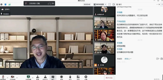 与会师生结合讲座主题开展讨论。郭淼表示,在新时代社会背景下,新闻传播者应深入了解学习马克思主义思想体系,建立理性批判的思维方式,从时代发展的角度洞察人的发展。谢沁露就马克思主义新闻观与融媒体之间的双向影响做了进一步阐述,强调现代融媒体发展需注重返本开新,助力媒体发展进入新阶段。李清霞表示双方院校有良好的学术研讨氛围,未来合作交流机会广阔,并期待以后能有更深的交流与合作。
