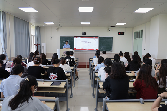 肖道远以“什么是思政课?我们和思政课”为主题,从“何谓教育”、“学习、工作、生活的辩证关系”以及“何谓青年”三方面展开讲解。在“何谓教育”方面,他表示教育的“三位一体”,即家庭教育、学校教育和社会教育的本质是引导青年成长、成材。就业就是办学的安全,广大青年要做好“把关”,以树立正确的世界观、价值观、人生观为依托更好树立理性、平实的择业观、就业观。在“学习、工作、生活的辩证关系”方面,他表示学习工作是生活的一部分,一个时代的精神是青年代表的精神,一个时代的性格是青春代表的性格。青年人必须不断学习理论知识来提升个人能力,同时要培养自省能力不断更新自己、自我批判、自我完善。要把握好当下,脚踏实地奋斗。在“何谓青年”方面,他以“万般皆下品、唯有读书高”来勉励大家不断读书充实提升自我,他勉励同学们努力实现人生理想。
