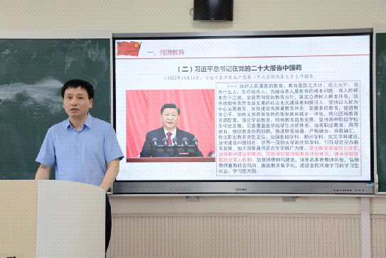 为推动学习贯彻习近平新时代中国特色社会主义思想主题教育走实走深,6月14日,校党委副书记、纪委书记、监察专员肖道远为学院2021级1班、2班团员青年讲授专题思政课。