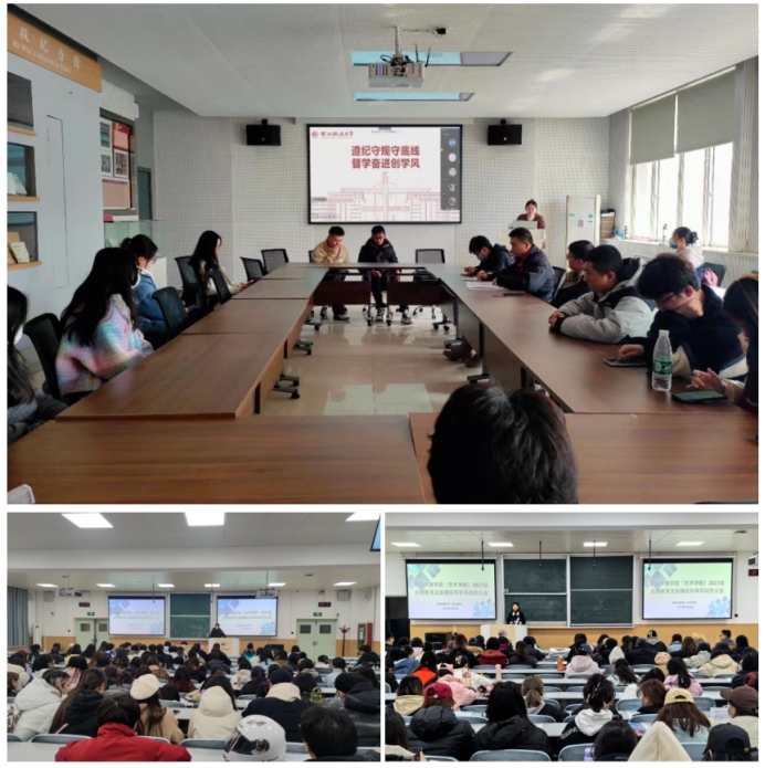 研究生、本科生各年级召开纪律教育暨学风建设动员大会,学院党委副书记秦音参加会议,各年级辅导员老师主持大会。