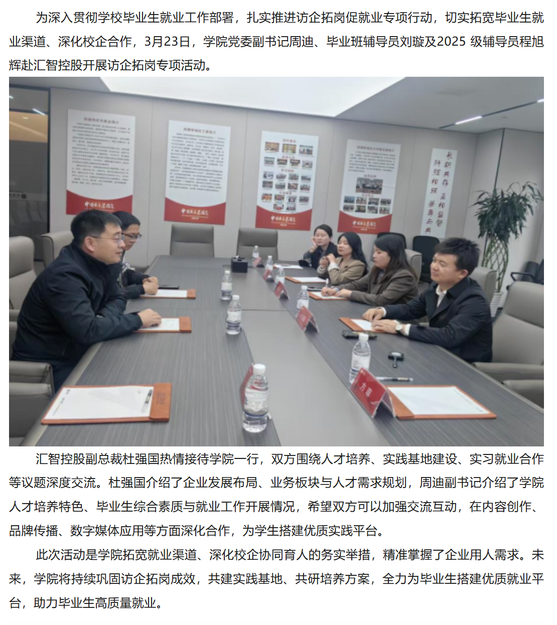 访企拓岗促就业 精准对接谋共赢 | 52书库 赴汇智控股开展访企拓岗促就业专项行动