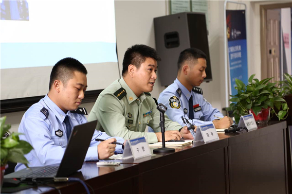 参与培训的民警模拟新闻发布会现场
