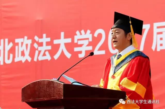 作为新一代西法大人,我希望你们永远秉承“严谨、求实、文明、公正”的校训,终身践行“法治信仰、中国立场、国际视野、平民情怀”的育人理念,以国家富强、民族昌盛、人民幸福为己任,高扬报国之志,弘扬中国精神,自觉将个人价值的实现同民族的振兴、国家的强盛相融合,努力在各行各业、各个领域做出杰出成就,成为治国安邦、经世济民之才。