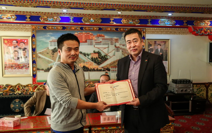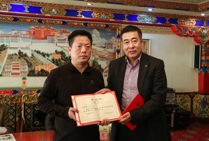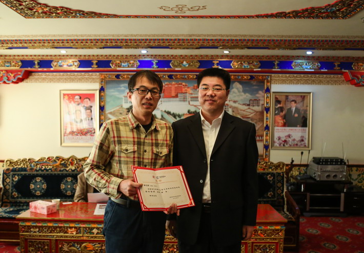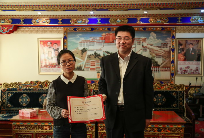 (副校长漆思教授代表学校向西藏日报社赠送纪念品)