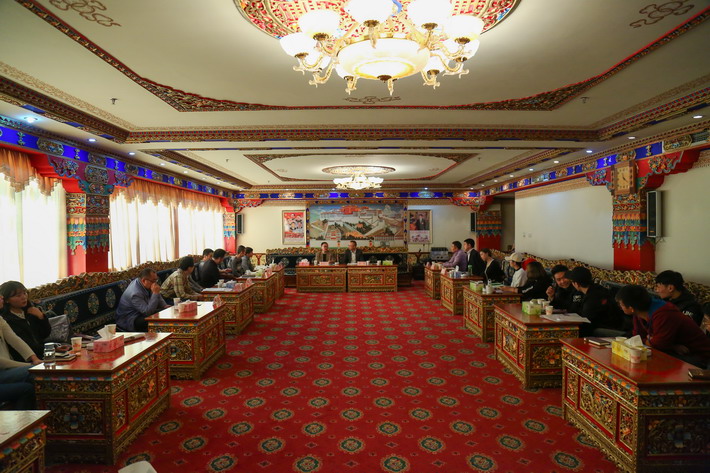 (西藏日报社办公室主任刘振坤主持会议)