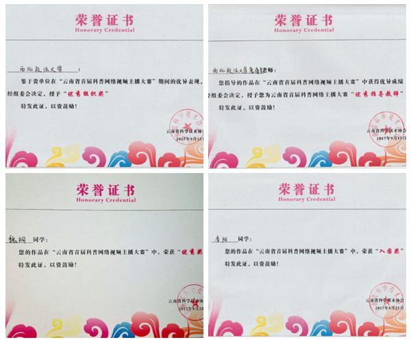 学子在云南省首届“科普网络视频主播大赛”中喜获佳绩