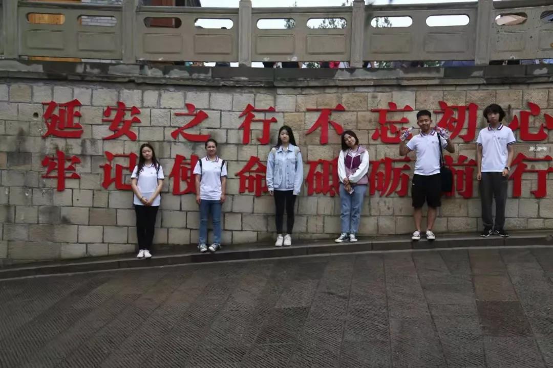 师生赴宝塔山学习参观。宝塔山是革命圣地的象征和标志,始建于唐代,因山上有宝塔而名,迄今约有一千二百多年历史。宝塔旁还留有一口明代铸造的大铁钟,当年中共中央驻地延安时,这口钟就用来报时和报警。“巍巍宝塔山,滚滚延河水”,正是表达了人们对那段光荣革命岁月的怀念。歌颂宝塔,怀念宝塔,实际是在怀念延安岁月,歌颂延安精神。