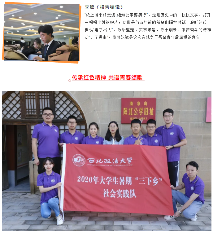 编者按:适逢中国共产党成立99周年,为响应国家号召,开展“红色新闻事业寻根之旅”活动,西法大新传延安实践队成员怀着对革命圣地、红色摇篮的憧憬和向往,奔赴革命圣地延安,围绕中国共产党百年新闻事业发展历史,结合延安红色新闻文化资源特色,追溯中国红色教育开端,探索“老延大新闻班”历史,继承与弘扬革命前辈红色新闻精神,立志成为具有红色血脉、家国情怀的高素质复合型新闻传播后备人才。