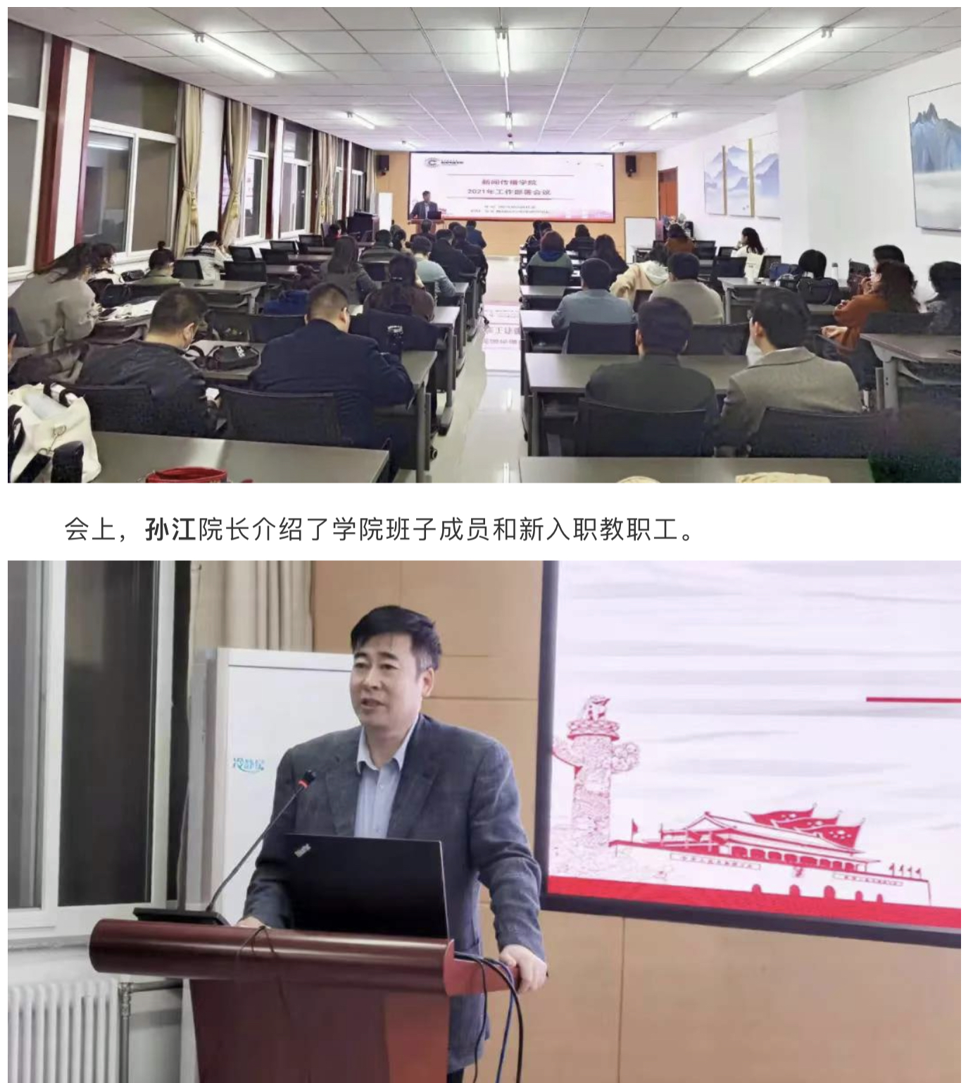 各教学系及职能科室总结了2020年工作计划部署2021年工作。新闻系符万年主任、广播电视系侯旋主任、编辑出版系杨芬霞主任、广播电视编导系李璐主任、戏剧影视文学系杨晓副主任、网络与新媒体系申玲玲主任、现代传播实验中心负责人王洋老师、教务秘书潘龙老师等分别总结了本科教学、实习实践、就业创业等有关工作,对2021年工作计划进行陈述。