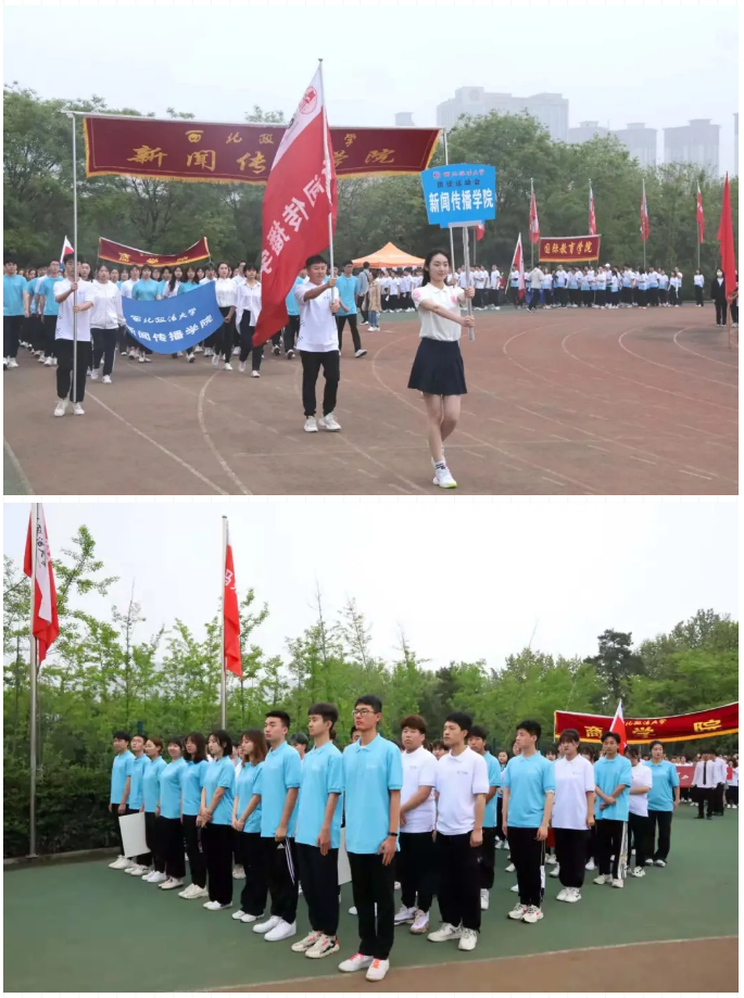 校国旗护卫队英姿勃发,步伐整齐,庄重地托举着国旗迎面走来,裁判员方队,十七支学院部门代表队紧随其后,他们笑容灿烂、朝气蓬勃;他们意气风发、精神抖擞;他们活力飞扬、奋勇向前。