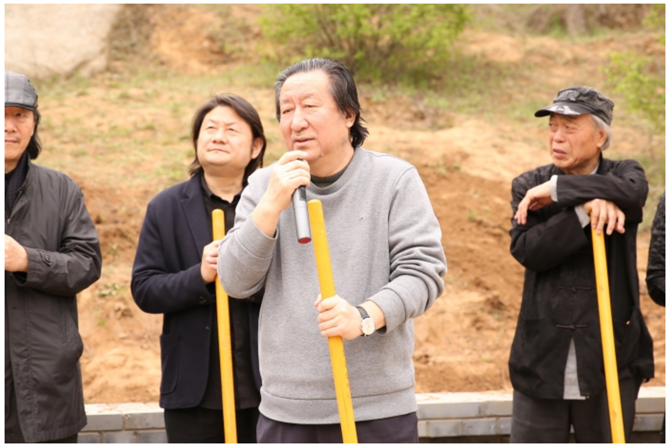 杨晓阳先生在致辞中提到,没有绿色,就没有生命,“我是偏爱植树,我走到哪里都要植树”。他回忆起2012年,中国国家画院组织全国一百名画家来到延安写生、采风一个多月,画家们下飞机时惊讶于山坡上的绿色,大家感叹道:“黄土高原不复存在,锦绣山河就在眼前”。之后在杨晓阳先生的倡导下,决定每年栽树的同时,资助需要帮助的留守儿童。他希望“十年树木百年树人”中国画家公益植树活动可以继续发扬光大,长此以往,久久为功,美丽中国就不是一句空话,可以通过大家的共同努力,把“绿水青山就是金山银山”真正落到实处,为中华民族的伟大复兴做出更大的努力。