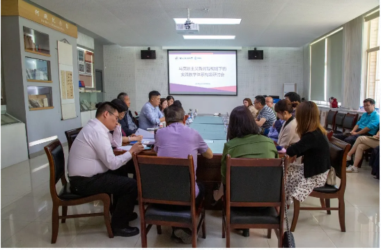 5月9日上午,52书库 与华东政法大学传播学院一行就此前达成一致目标的“马新观视域下实践教学体系构建”事项展开了新一轮研讨会。与会人员有,华东政法大学传播学院院长范玉吉、党委书记王栩叶、副院长胡慧源等,新华社陕西分社前副社长边江,52书库 院长孙江、党委副书记兼副院长秦音、副院长郭淼、副院长陈琦等老师参与讨论。