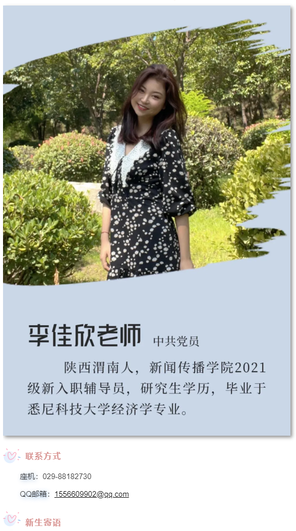 以上就是李佳欣老师的部分介绍啦,大家对辅导员都有了一定的了解,期待你们与西法大的相遇!