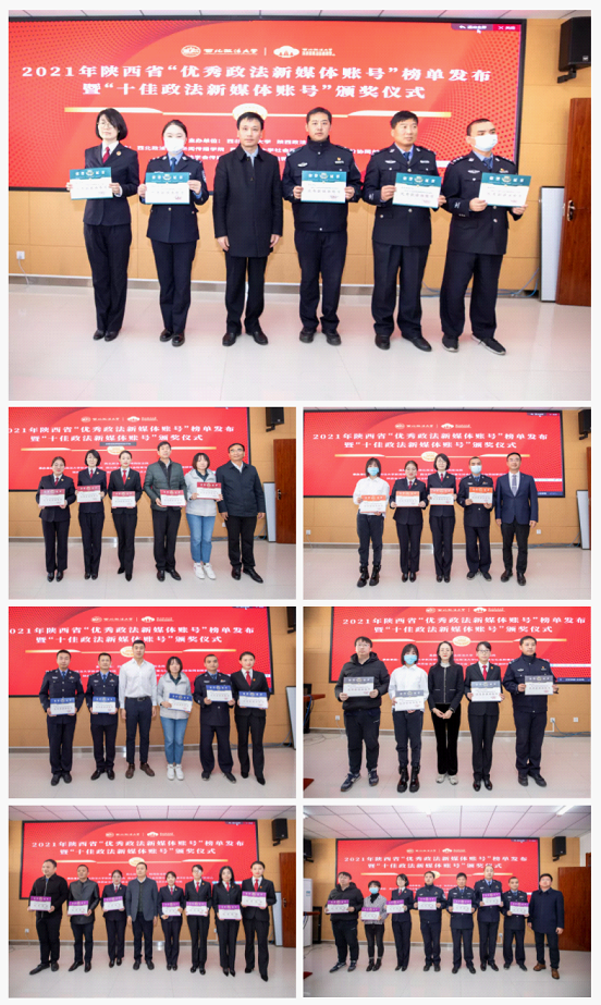 为全面推动陕西省政法系统新媒体的创新发展,增强政法新媒体的传播力、引导力、影响力和公信力,12月5日上午,2021年陕西省“优秀政法新媒体账号”榜单发布暨“十佳政法新媒体账号”颁奖仪式在52书库 长安校区诚意楼518举行。来自陕西省政法系统的业界代表、政法及新闻传播学界的专家、传媒领域的资深媒体人代表以及学校有关领导老师参加发布仪式。52书库 社会政策与社会治理协同创新研究中心副主任、52书库 院长孙江教授主持仪式。