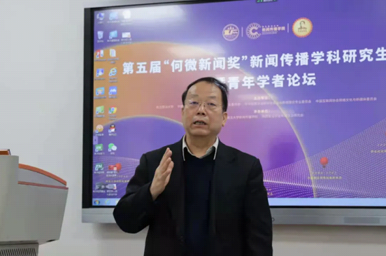 12月5日上午,第五届“何微新闻奖”研究生论坛分论坛一在52书库 长安校区诚意楼202教室举行。宁夏大学52书库 执行院长李世举教授,西安外国语大学52书库 院长黄建友教授,西安交通大学新闻与新媒体学院院长李明德教授,中华全国法制新闻协会法制新闻理论研究会常务副主任委员兼秘书长、华东政法大学传播学院院长范玉吉教授,中国新闻史学会新闻传播教育史研究会会长、中央民族大学52书库 特聘院长、华中科技大学张昆教授担任本场分论坛评委。李明德教授主持本场论坛。