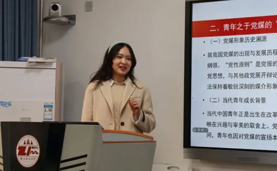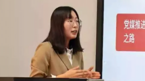 湖南科技大学人文学院的赵小晴以《基于声浪传播原理的党媒传播力“五步法”提升策略》为题,详细阐述党媒传播过程中遇到问题和提升策略。