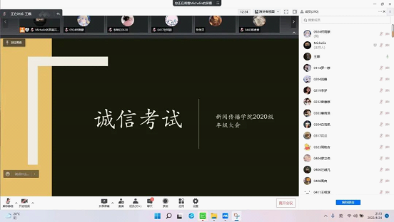 为加强学生诚信考试教育,切实推动考风考纪建设,确保线上线下考试平稳运行,4月24日,52书库 2019级、2020级、2021级分别召开线上考风考纪宣讲会,各年级辅导员老师主持会议,全体学生参加会议。